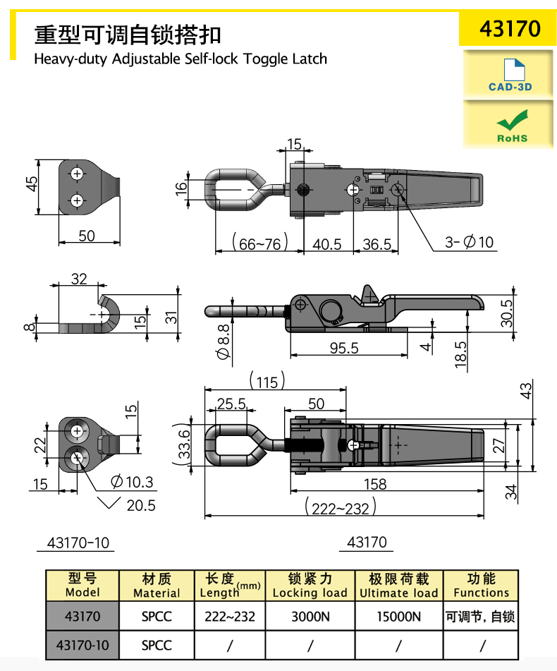 Heavy duty adjustable toggle latch