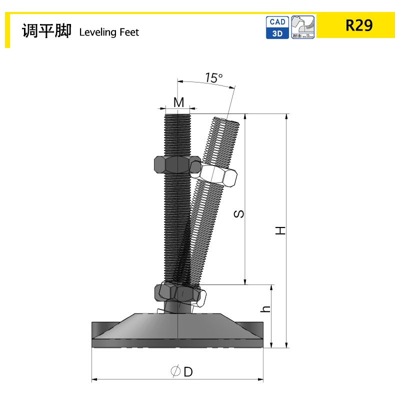 The screw provides a 15 degree universal adjustment to eliminate angle tolerances and improve the stability of the machine equipment
