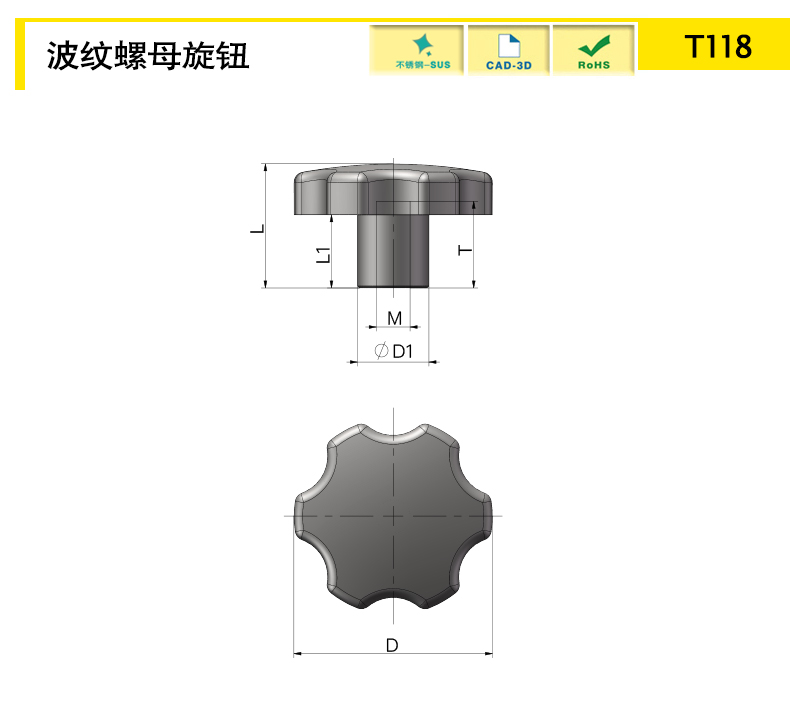 | T118B-D40-M8-M | 40 | 26.5 | 14 | m8 | 15 | nut | 16 | 1 | sus304 | Download |